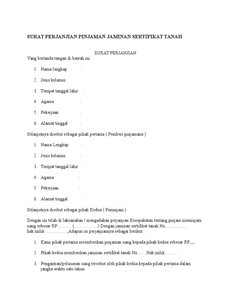 Contoh Surat Hutang Dengan Jaminan Tanah Cute766