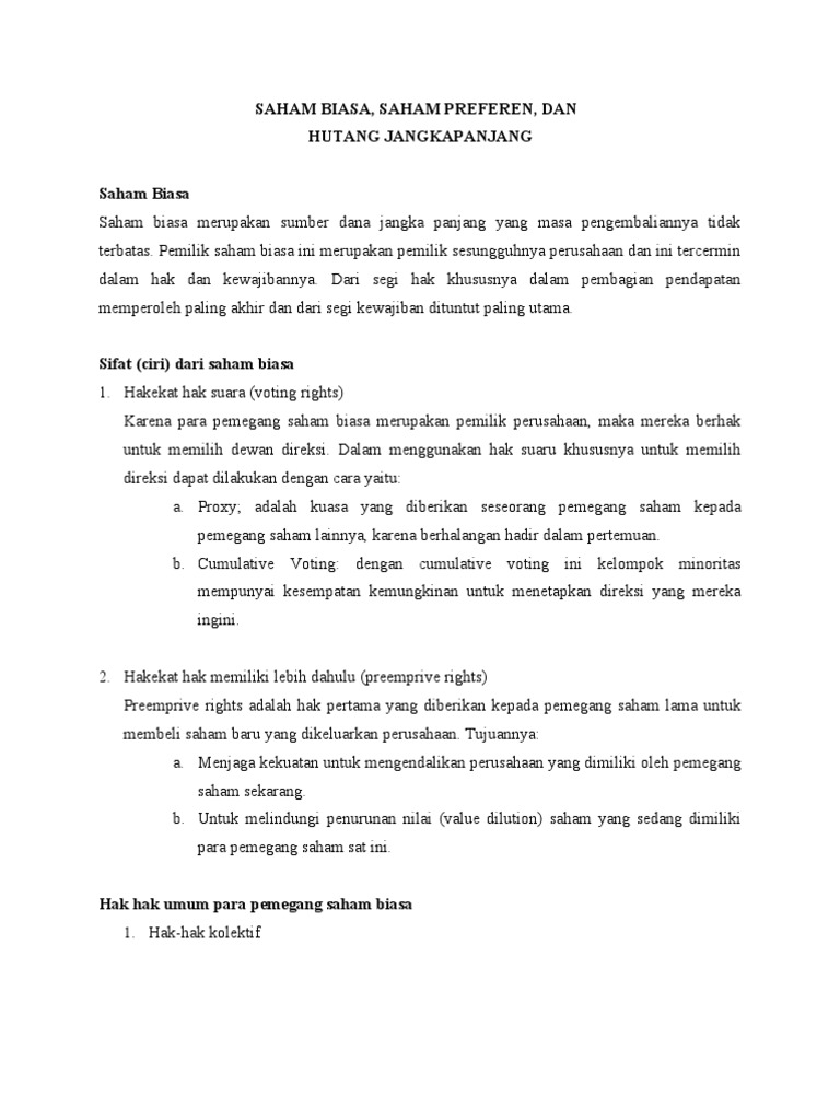 Lengkap Pengertian Saham Biasa Dan Saham Preferen