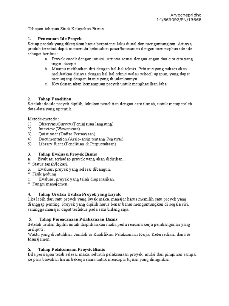 Tahapan studi kelayakan bisnis. Kelayakan bisnis adalah penelahan atau analisis tentang apakah suatu kegiatan. Jika terdapat lebih dari satu ide maka ide bisnis yang akhirnya akan dieksekusi yang harus dipilih dengan mempertimbangkan beberapa hal seperti hal teknis yang harus ditempuh serta. Tahapan pertama dalam studi kelayakan yaitu adanya penemuan ide bisnis harus dimulai dengan menentukan satu atau beberapa ide bisnis yang memiliki prospektif.