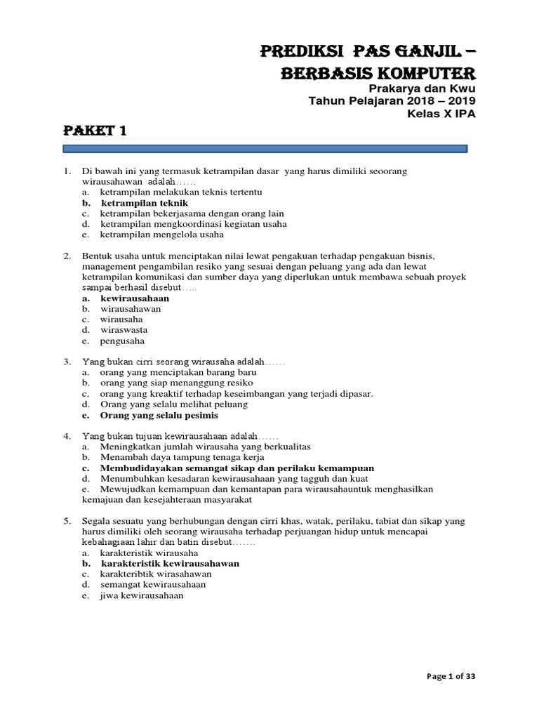 Kumpulan Predikasi Soal Pkwu Kelas X Ipa Docx