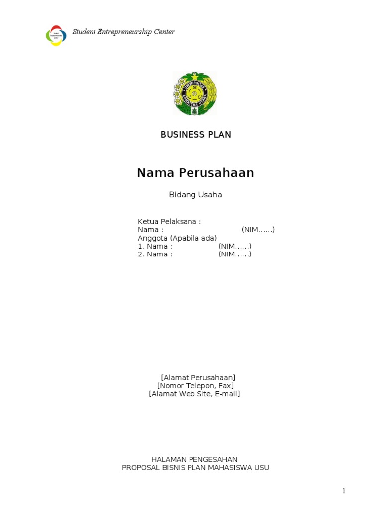 Contoh Business Plan Docx Over Depan 1 1 Gambar Dan Design