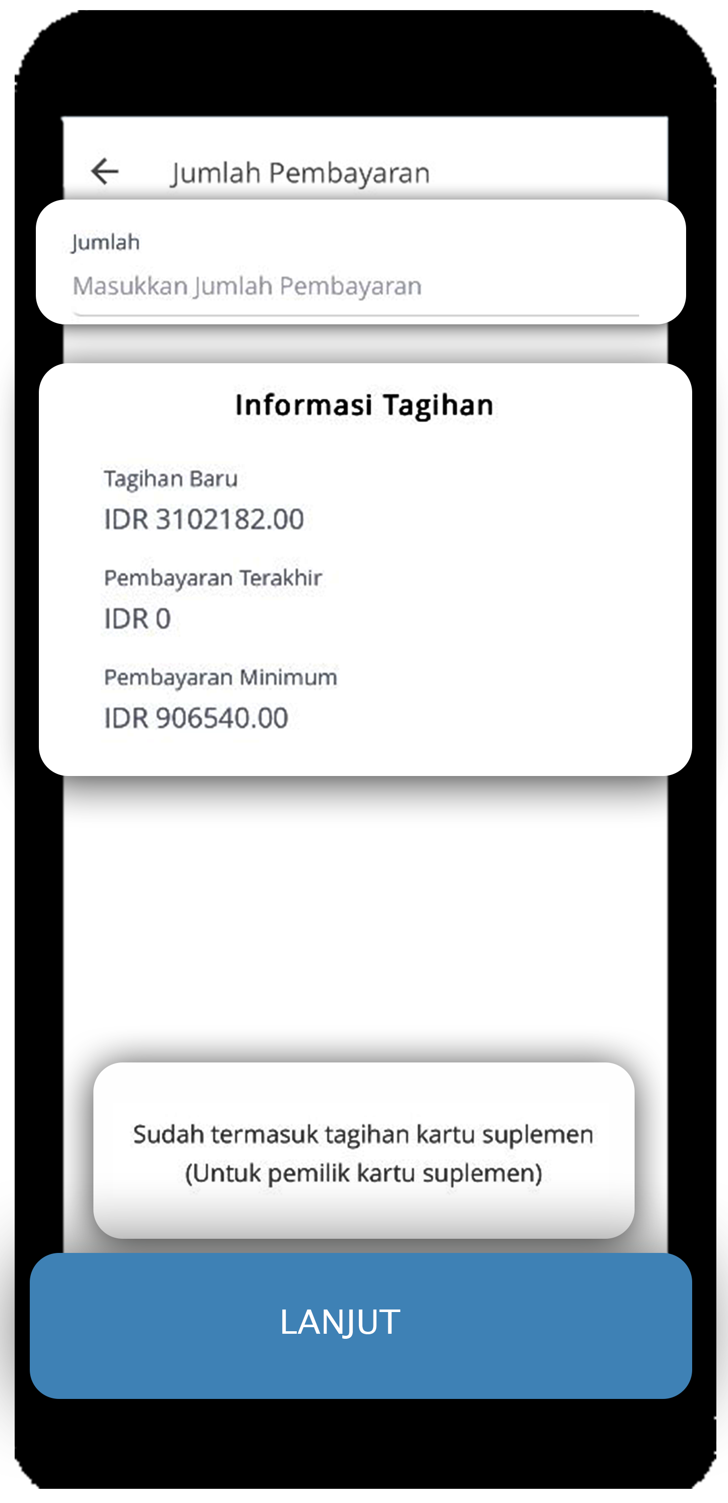 Daftarkan diri anda di kantor cabang terdekat. Besarnya tagihan yang harus anda bayar tertera pada lembar penagihan billing statement yang biasanya memuat rincian transaksi pembelanjaan dan penarikan tunai pembayaran serta biaya biaya lainnya bila ada. Untuk kategori pembayaran existing a setelah pilih mandiri kartu kredit yang akan dibayar halaman selanjutnya akan menampilkan informasi rekening tabungan yang akan didebet 1 kolom penyedia jasa 2 kolom nomor kartu kredit sesuai dengan pilihan nasabah pada halaman sebelumnya 3 kolom jumlah 4 dan kolom deskripsi opsional.