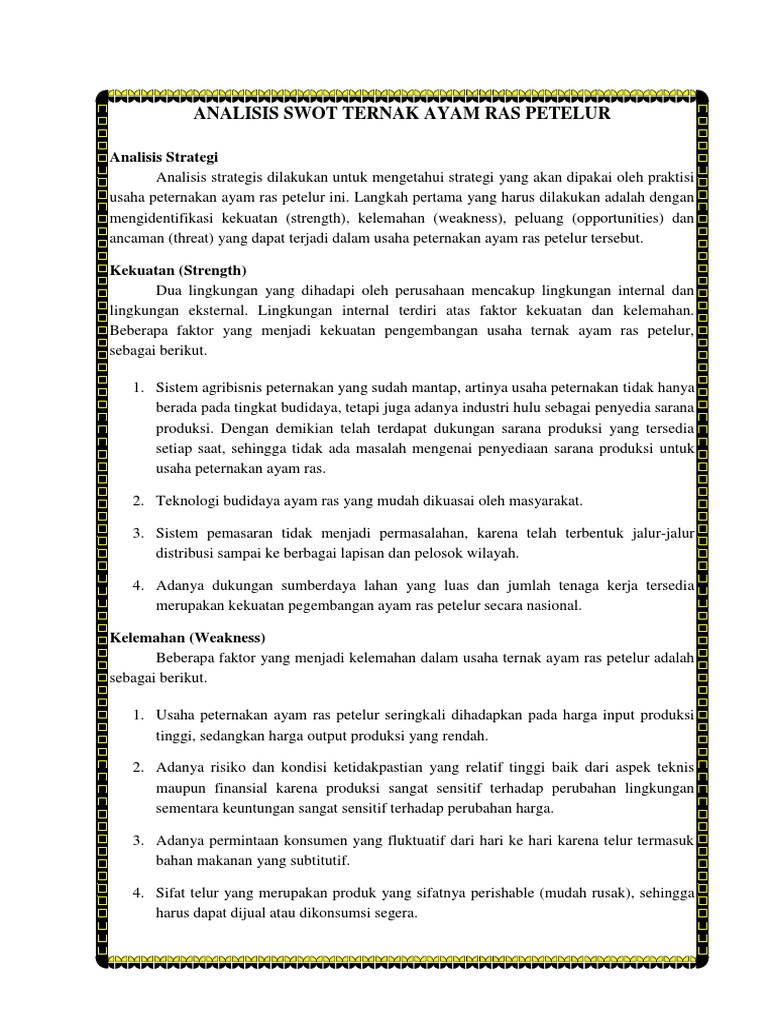 Analisis Swot Ternak Ayam Petelur