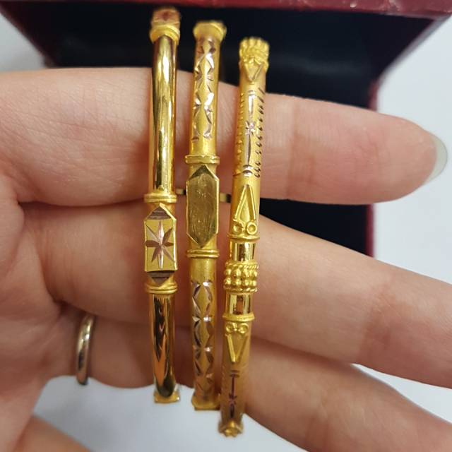 Gelang Tangan Emas Asli Kadar 700 70 22 18k D Bangle Ukir Keroncong Kuning Putih Cantik Ringan Baru