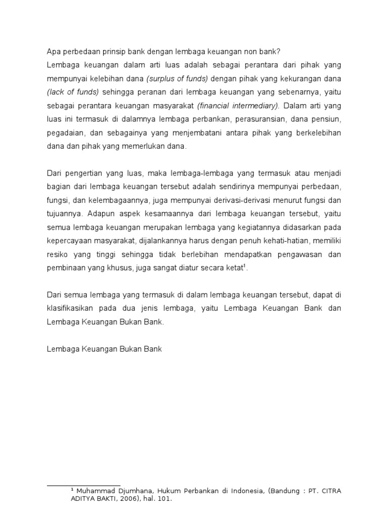 Apa Perbedaan Prinsip Bank Dengan Lembaga Keuangan Non Bank