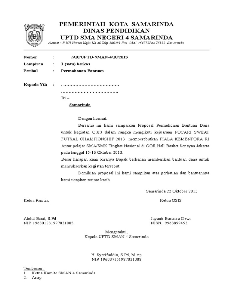 Surat permohonan bantuan dana kegiatan ini dibuat secara resmi dan diberi tanda tangan oleh pihak terkait sebagai bukti keabsahannya. Dengan rasa hormat yang tinggi kepada bapak rw. Surat permohonan bantuan dana dalam pelaksanaan suatu acara atau kegiatan tertentu ada beberapa faktor yang mempengaruhi kelancaran pelaksanaan acara atau kegiatan tersebut.