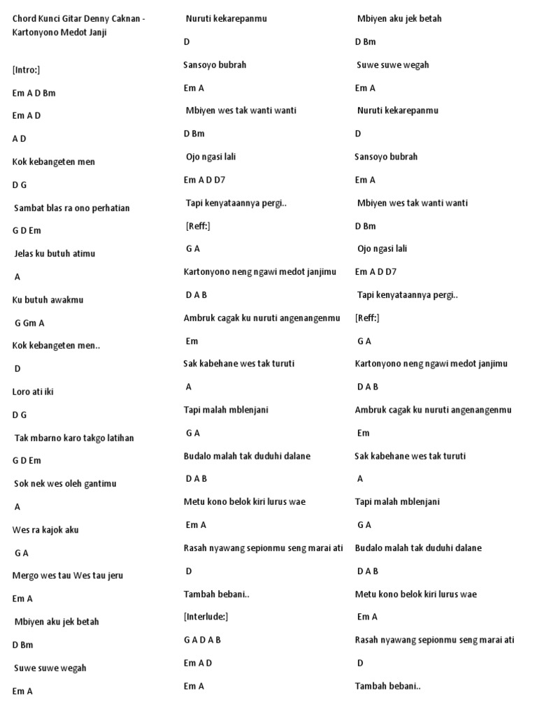 Chord Kunci Gitar Denny Caknan Kartonyono Medot Janji Docx