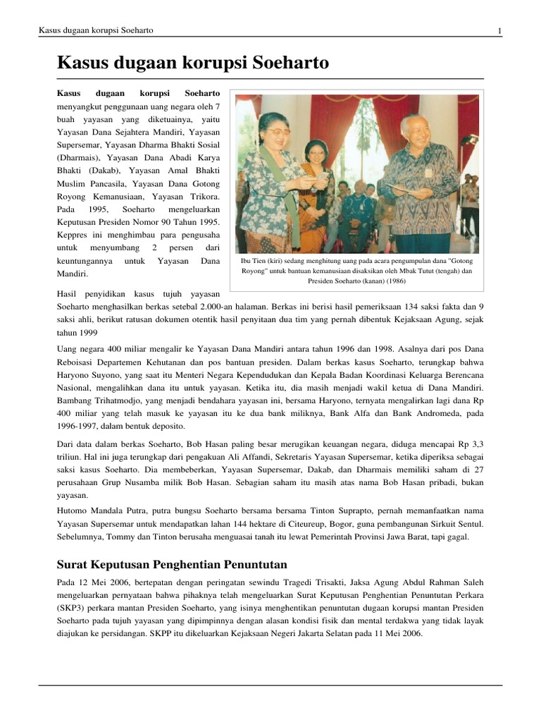 Bank swiss hanya mau tunduk utk membuka identitas keuangan nasabah nya kepada institusi2 semacam. Soeharto menyerahkan surat kuasa kepada kejaksaan agung untuk mencari fakta dan data berkaitan dengan simpanan kekayaan di bank bank luar negeri swiss dan austria. Jakarta misteri harta kekayaan peninggalan soekarno masih menjadi teka teki hingga saat inicerita yang beredar presiden pertama indonesia ini tak hanya menyimpan harta di indonesia bahkan hingga ke swiss.