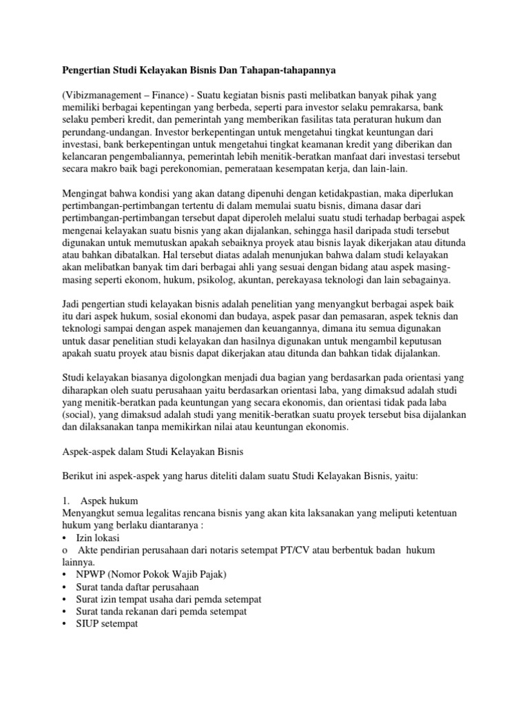 Doc Pengertian Manfaat Amp Tujuan Studi Kelayakan Bisnis