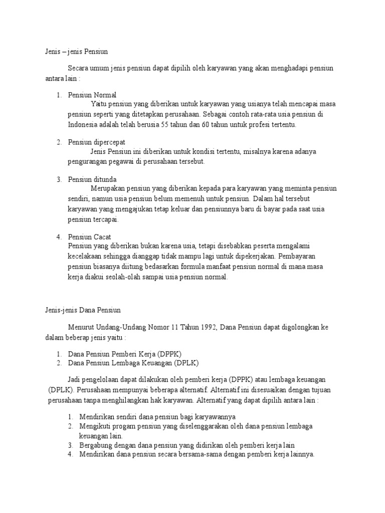 Undang undang nomor 11 tahun 1992 tentang dana pensiun lembaran negara. Dana pensiun lembaga keuangan dplk yang didirikan oleh bank atau perusahaan. Berdasarkan nomor undang undang pada bulan november 1992 ada dua jenis dana pensiun.