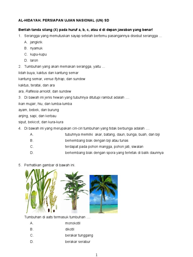Soal Un Sd Paket 1 Pdf Document