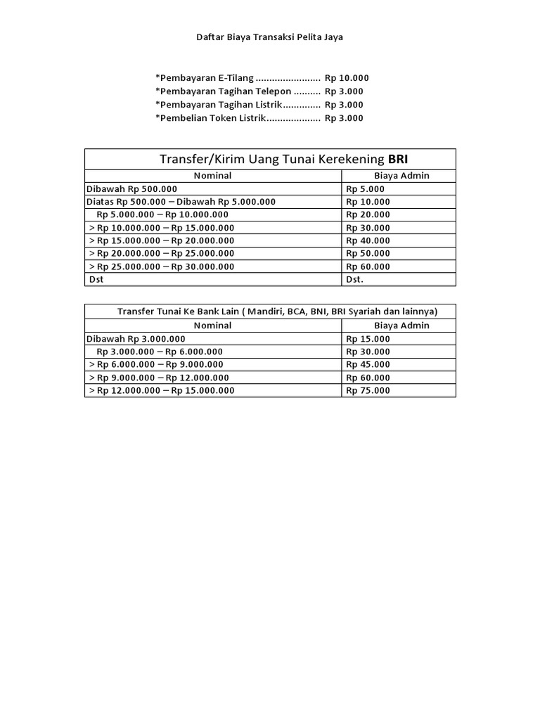 Bank bri syariah adalah anak perusahaan bank bri yang merupakan bank bumn di indonesia. Biaya administrasi dan transfer bank di indonesia. Apabila saldonya kurang dari rp 500000 maka pihak bank akan mengenakan biaya administrasi normal seperti halnya bank.