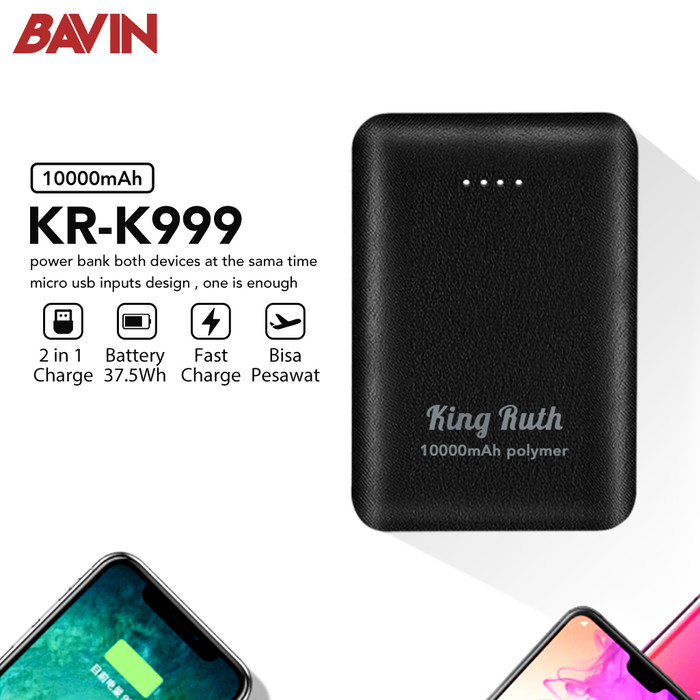 Mini Portable Powerbank 10000mah 37wh 2a Quick Charge Pesawat K999 Hitam King Ruth K999