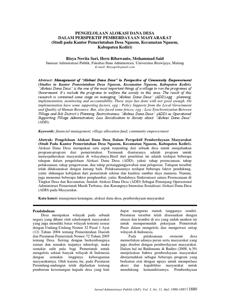 Pengelolaan dana desa pdf. Dalam aturan tersebut dijelaskan bahwa pendanaan pembangunan yang dilakukan. 2 abstrak nunuk riyania220120006 analisis pengelolaan dana desa. Dana desa akuntabilitas transparansi pemerintah desa.