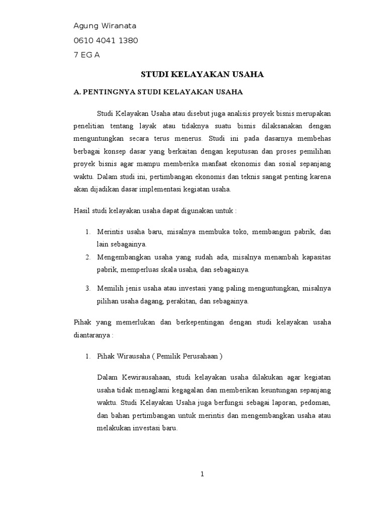 Sejauh ini ada banyak para enterpreneur yang setuju dengan pernyataan bahwa analisis studi kelayakan bisnis penting. Sedangkan studi kelayakan yang dilakukan untuk menilai kelayakan dalam pengembangan sebuah usaha disebut studi kelayakan bisnis. Makalah studi kelayakan bisnis oleh dosen pendidikan 2 diposting pada 25092020 kelayakan bisnis adalah penelahan atau analisis tentang apakah suatu kegiatan investasi memberikan manfaat atau hasil bila dilaksanakan nurmalina 2009.
