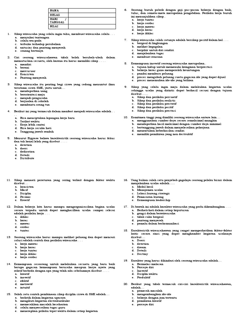 Soal Kewirausahaan Kelas 10 Sma Ma Dan Kunci Jawabannya