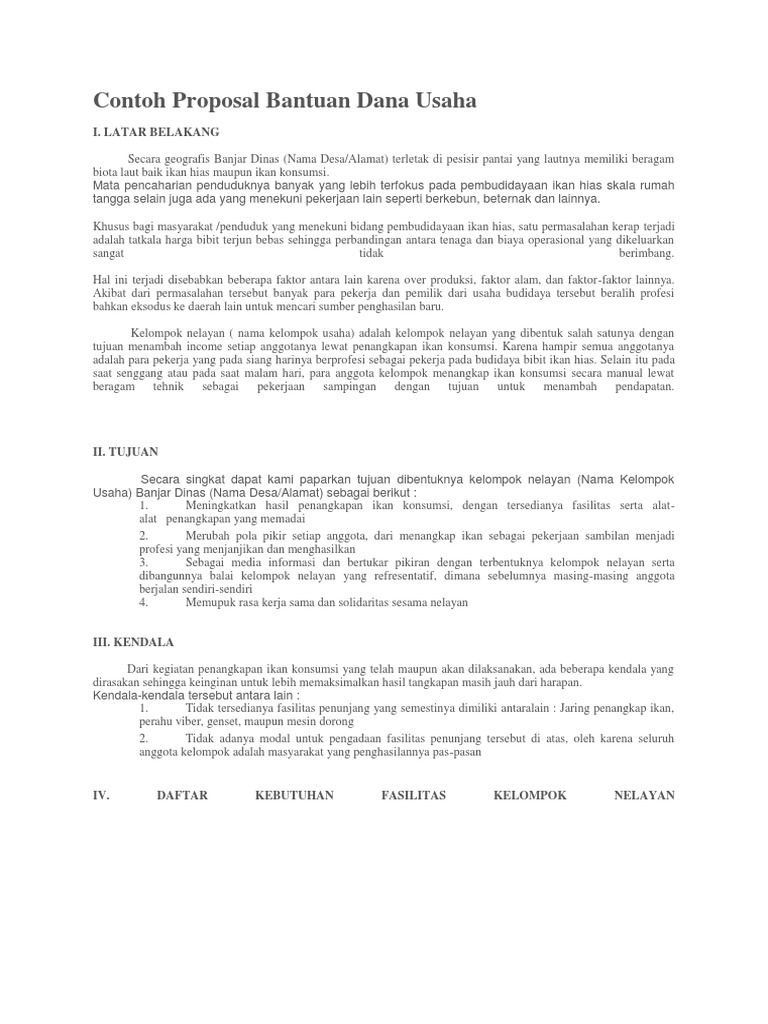 Contoh proposal bantuan dana usaha kios pdf gambaran download contoh surat proposal permintaan alkes for free. Contoh proposal usaha di atas dapat anda edit sesuai dengan jenis usaha kelompok maupun estimasi dana yang dibutuhkan dan dalam membuat proposal bantuan dana usaha juga harus dilampirkan dengan lembar pengesahan dan. Pembuatan contoh proposal biasanya ditujukan kepada suatu perusahaaninstansi tertentu.