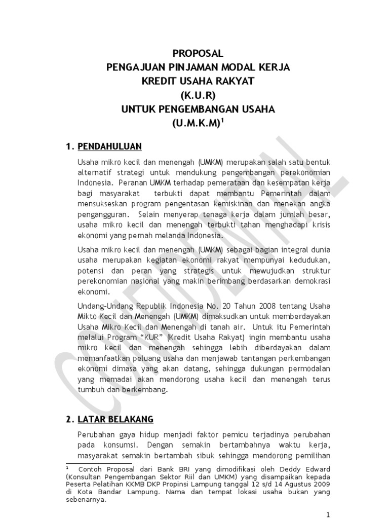 Contoh Proposal Pengajuan Pinjaman Modal Usaha Ke Bank