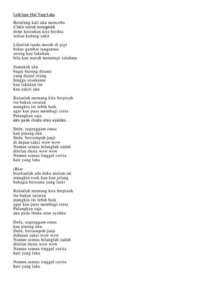 Chord gitar chord gitar hati yang luka betharia sonata. Kalaulah memang kita berpisah itu bukan suratan. Dulu segenggam emas kau pinang aku dulu bersumpah janji di depan saksi wow wow namun semua hilanglah sudah ditelan dusta wow wow namun semua tinggal cerita hati yang luka biar biarkanlah ada duka malam ini mungkin esok kan kau jelang bahagia bersama yang lain kalaulah memang kita berpisah.