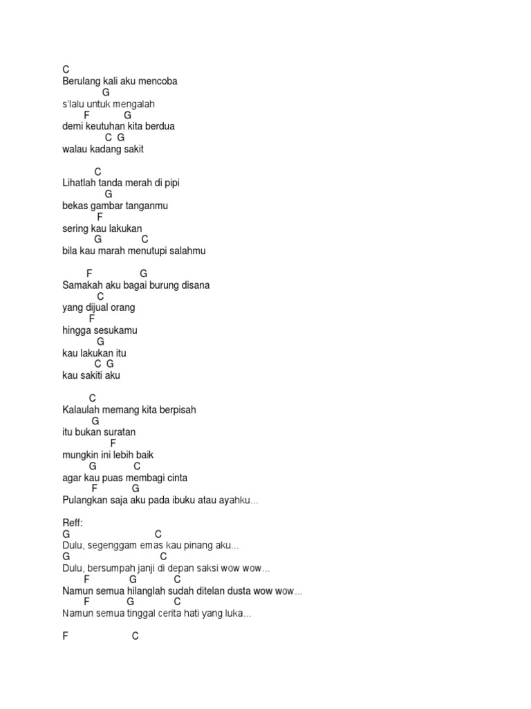 Dulu segenggam emas kau pinang aku. Dulu segenggam emas kau pinang aku d g dulu bersumpah janji di depan saksi wouo c d namun semua hilanglah sudah g ditelan dusta wouo c d namun semua tinggal cerita.