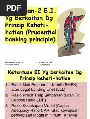 Prinsip kehati hatian bank prudential banking . Viii abstract maulina yuliati e0013270. Implementation of prudential principles banking for giving credit with warehouse receipt guarantee in central java bank jepara branch office. 11 pengertian prinsip kehati hatian prudential banking menurut ketentuan pasal 2 undang undang nomor 10 tahun 1998 dikemukakan bahwa perbankan indonesia dalam melakukan usahanya berasaskan demokrasi ekonomi dengan menggunakan prinsip kehati hatian18 prinsip kehati hatian atau dikenal juga dengan prudential banking.