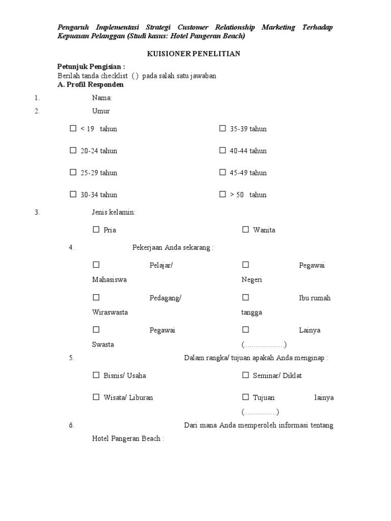 15 Contoh Kuesioner Terbuka Tertutup Kepuasan Pelanggan Dll