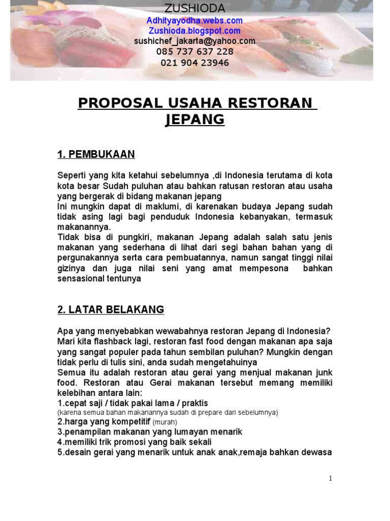 Contoh proposal bisnis kuliner. Contoh proposal bisnis kuliner jika sobat ukmsumut tertarik kamu dapat berinovasi di bidang kuliner dan memulai usahamu di bidang yang pasarnya sangat luas ini. Kalau kamu punya hobi masak dan mahir dalam mengolah berbagai macam makanan dan minuman mungkin kamu bisa mengembangkan hobimu dengan membuka usaha kuliner yang menguntungkan. Disajikan hangat bisa dijadikan makanan pengganjal perut yang bergizi.