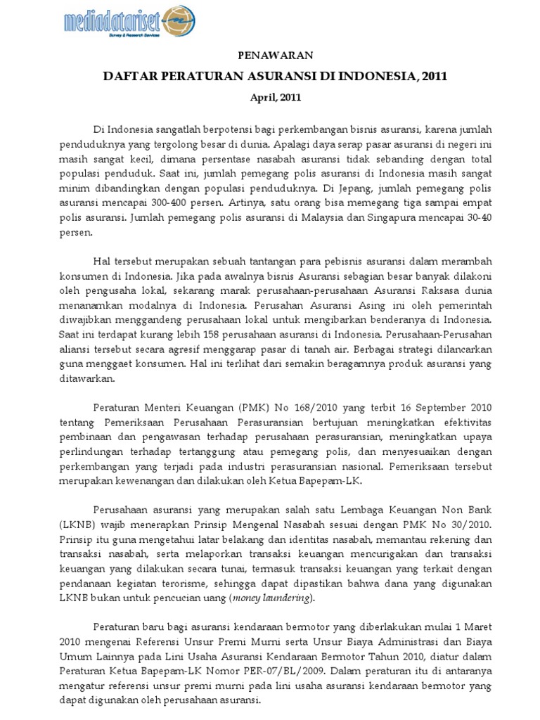 Daftar Peraturan Asuransi Di Indonesia 2011