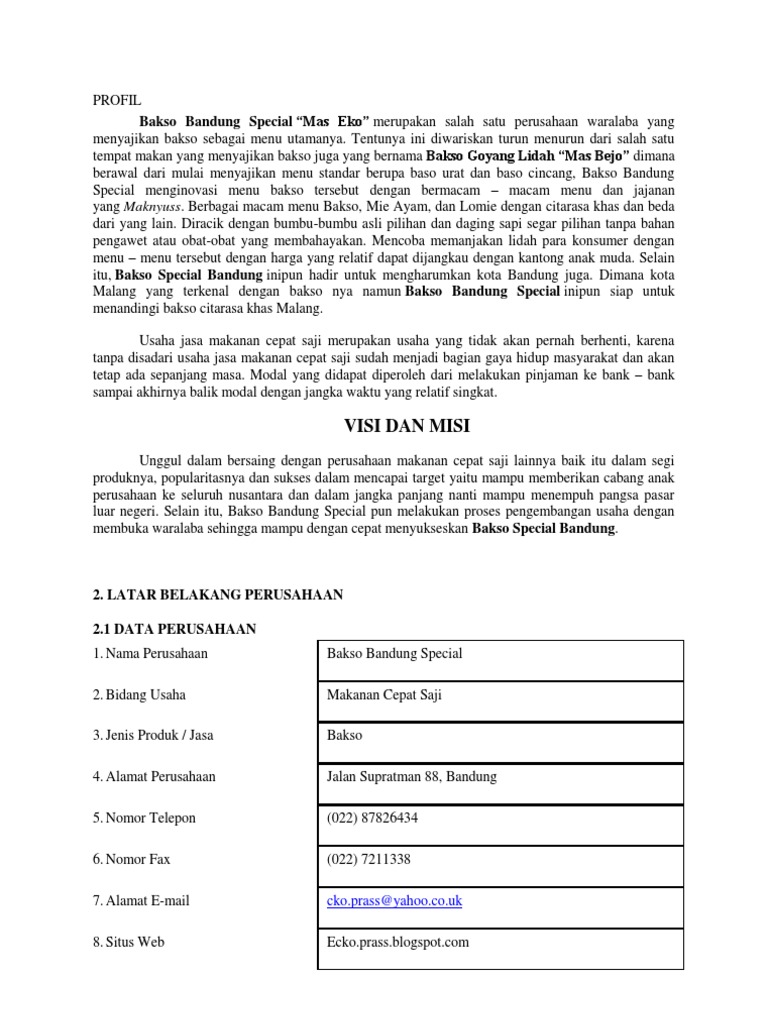 Contoh Proposal Bisnis Plan Ilmusosial Id