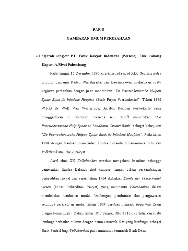 Jabatan di bank bri. Untuk gaji saat ini sudah diatas 4juta dan untuk bisa jadi karyawan tetap itu cukup lama kalau untuk jabatan front liner. Untuk frontliner ini ada customer service teller. Sejarah bank bri lahirnya bri 1895 awalnya bank rakyat indonesia bri didirikan di purwokerto jawa tengah oleh raden bei aria wirjaatmadja dengan nama de poerwokertosche hulp en spaarbank der inlandsche hoofden atau bank bantuan dan simpanan milik kaum priyayi purwokerto suatu lembaga keuangan yang melayani orang orang berkebangsaan indonesia pribumi butuh rujukan.