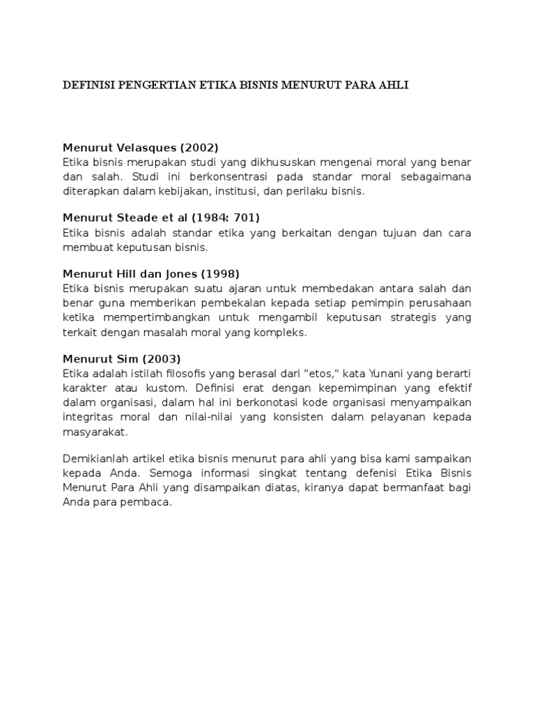 Definisi bisnis menurut para ahli. Secara historis kata bisnis dari bahasa inggris business dari kata dasar busy yang berarti sibuk dalam konteks individu komunitas ataupun masyarakat. 20 pengertian bisnis menurut para ahli pembahasan lengkap definisi bisnis yang tepat dan diakui kebenarannya masih menjadi bahan perdebatan hingga kini. Berikut ini adalah pengertian etika bisnis menurut para ahli.