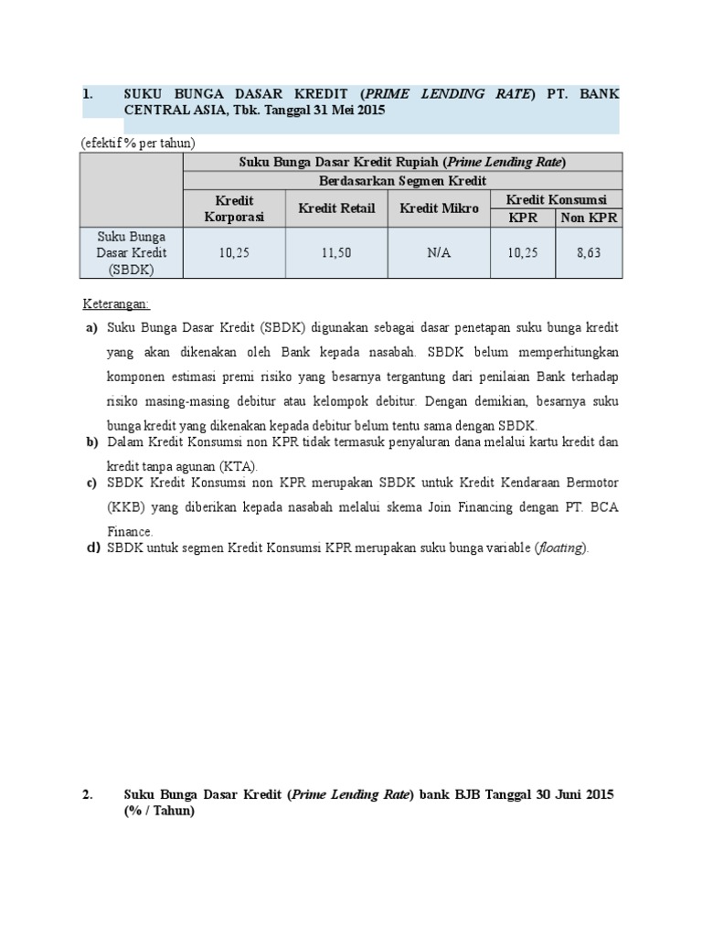 Suku Bunga Dasar Kredit Rupiah Prime Lending Rate Pt Bank
