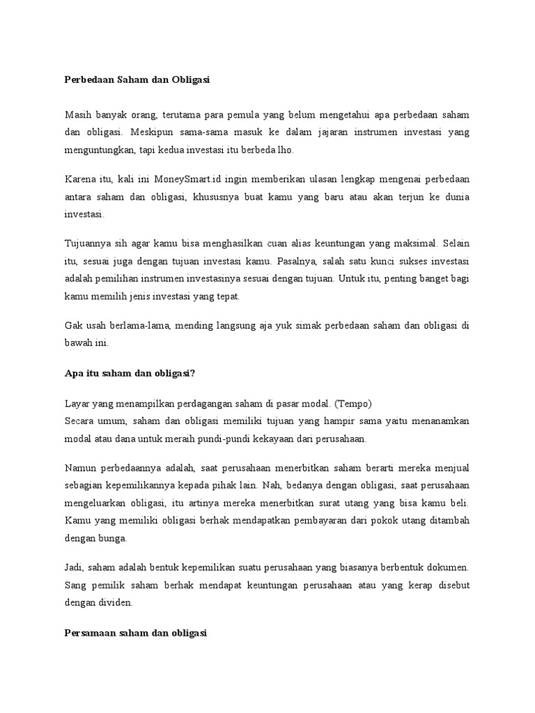 Perbedaan saham dan obligasi 51. Perbedaan saham dan obligasi saham dan juga obligasi sama sama temasuk kedalam jenis investasi.