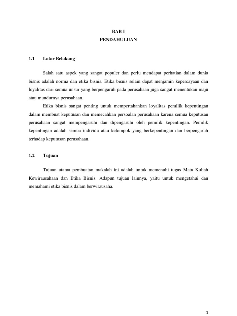 Yang telah memberi rahmat dan hidayah nya kepada penulis sehingga dapat menyelesaikan karya tulis ilmiah kewirausahaan dan etika bisnis ini tepat pada waktunya. Etika sebagai refleksi dalam hal ini menyoroti dan menilai baik buruknya seseorang. Puji syukur alhamdulillah penulis panjatkan kehadirat allah swt.