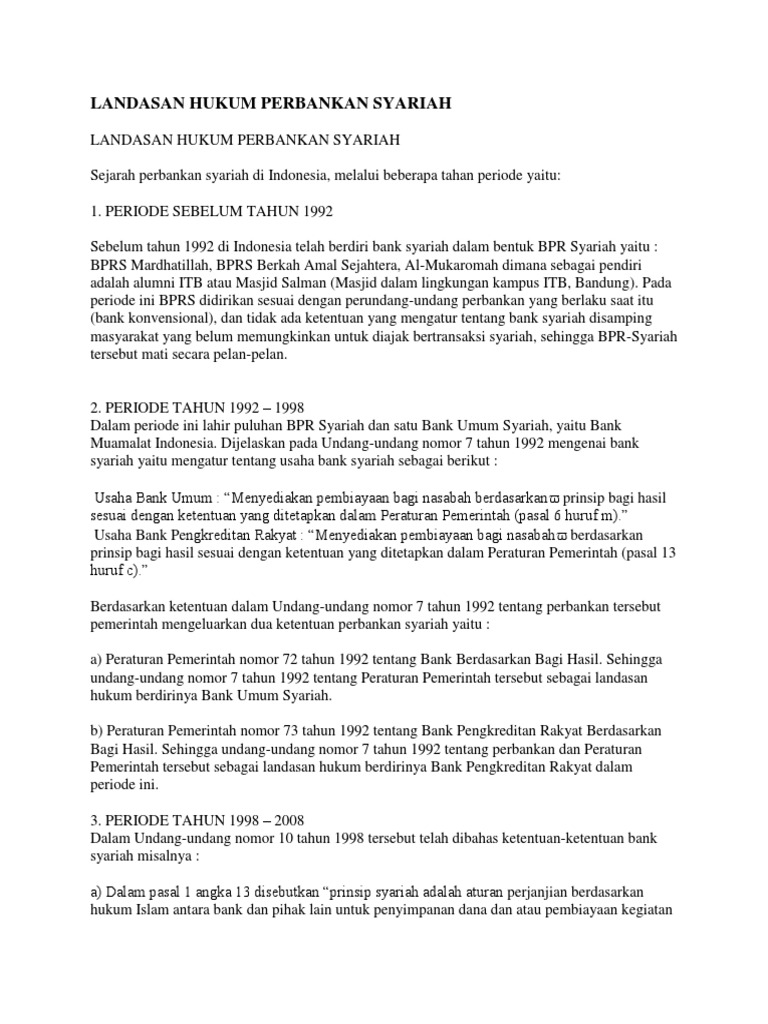 Dasar hukum bank syariah. Hukum ekonomi internasional aspek. Dasar hukum mengenai bank syariah mengacu pada undang undang nomor 7 tahun 1992 tentang perbankan sebagaimana diubah dengan undang undang nomor 10 tahun 1998 tentang perubahan atas undang undang nomor 7 tahun 1992 tentang perbankan uu 101998 dan undang undang nomor 21 tahun 2008 tentang perbankan syariah uu 212008. Sebelum kita membahas tentang dasar hukum bank syariah langkah baiknya kita mnegetahui sumber hukum yang ada di indonesia ini ada beberapa landasan atau peraturan perundang undangan yang dijadikan sebagai sumber hukum yang telah diatur dalam uu no 10 tahun 2004 pasal 7 ayat 1 tentang pembentukan peraturan perundang undangan antara lain.