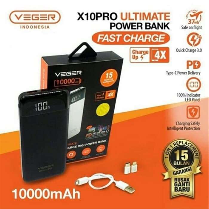 Power Bank Veger Ultimate X10 Pro 10000 Mah Quick Charge Digital Led