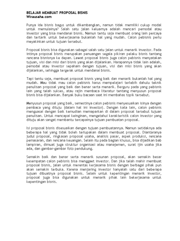 Contoh proposal ide bisnis. Karena itu buat proposal bisnis yang ringkas tapi ringkas dan masih informatif. Pada kesempatan kali ini saya akan membagikan contoh bisnis plan atau proposal rencana usaha yang dapat anda modifikasi sesuai dengan ide bisnis yang anda miliki. Contoh bisnis plan berikut ini.