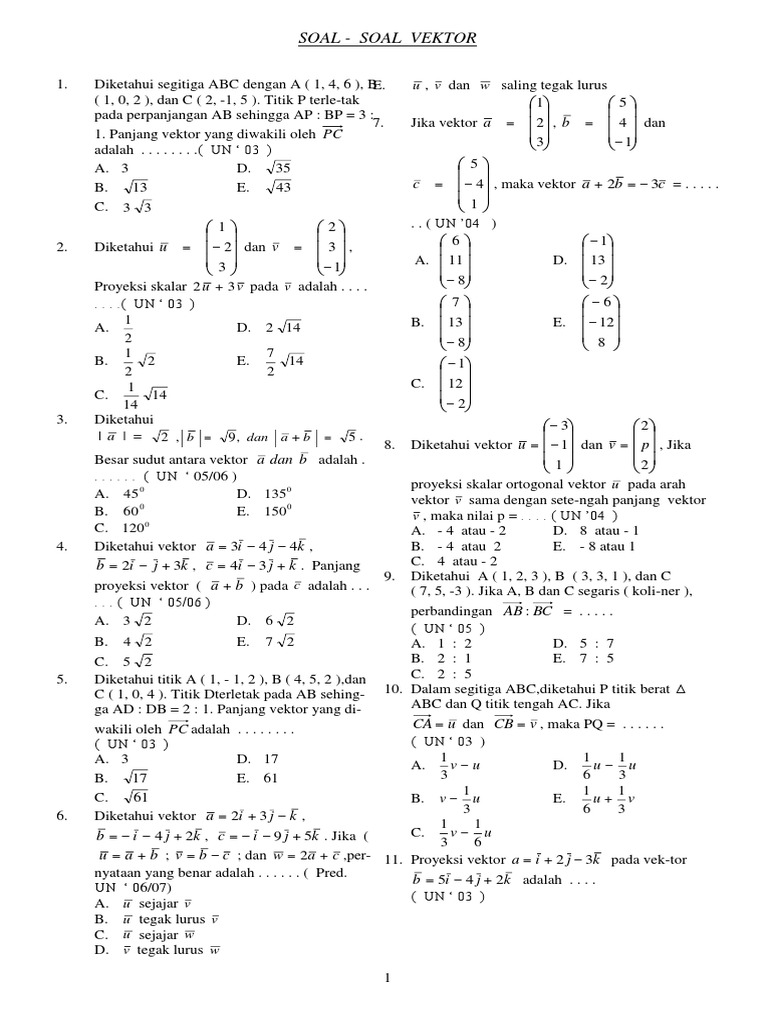 Bank soal vektor matematika. Institusi pendidikan smp sma smk berperan memfasilitasi siswa untuk meningkatkan kemampuan akademis dalam bidang matematika ipa dan ips. Materi skl kisi kisi.