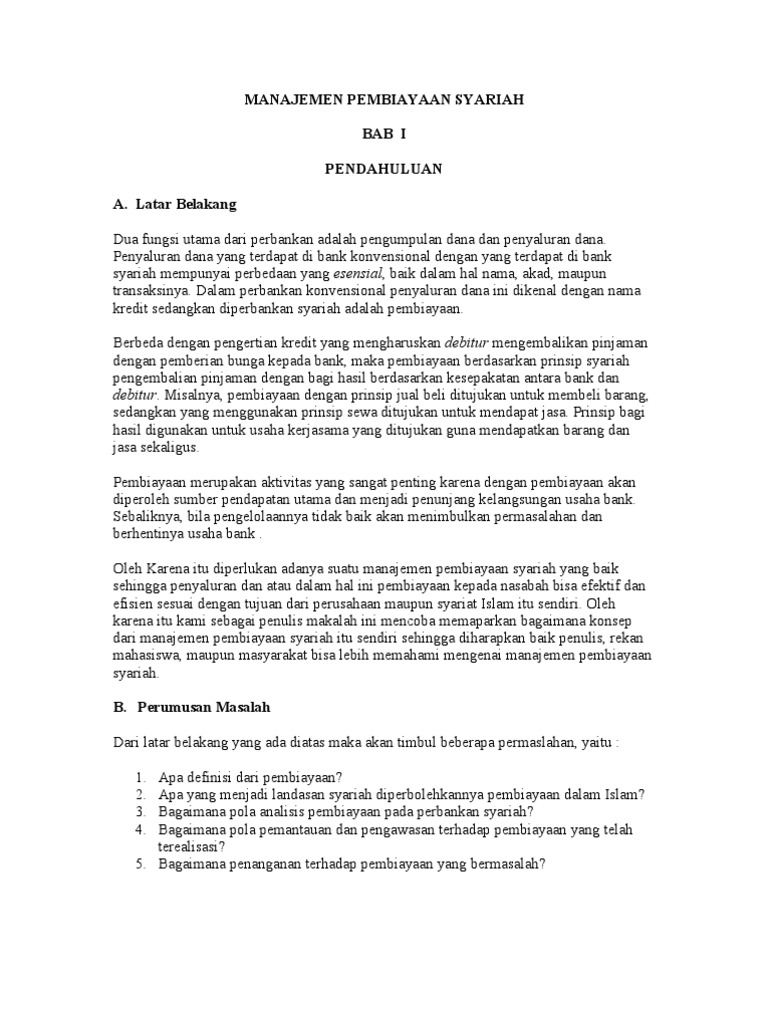 Bab I Pendahuluan A Latar Belakang Lembaga Keuangan Syariah