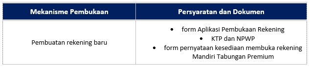 Syarat Khusus Pembukaan Rekening Mandiri Tabungan Rencana