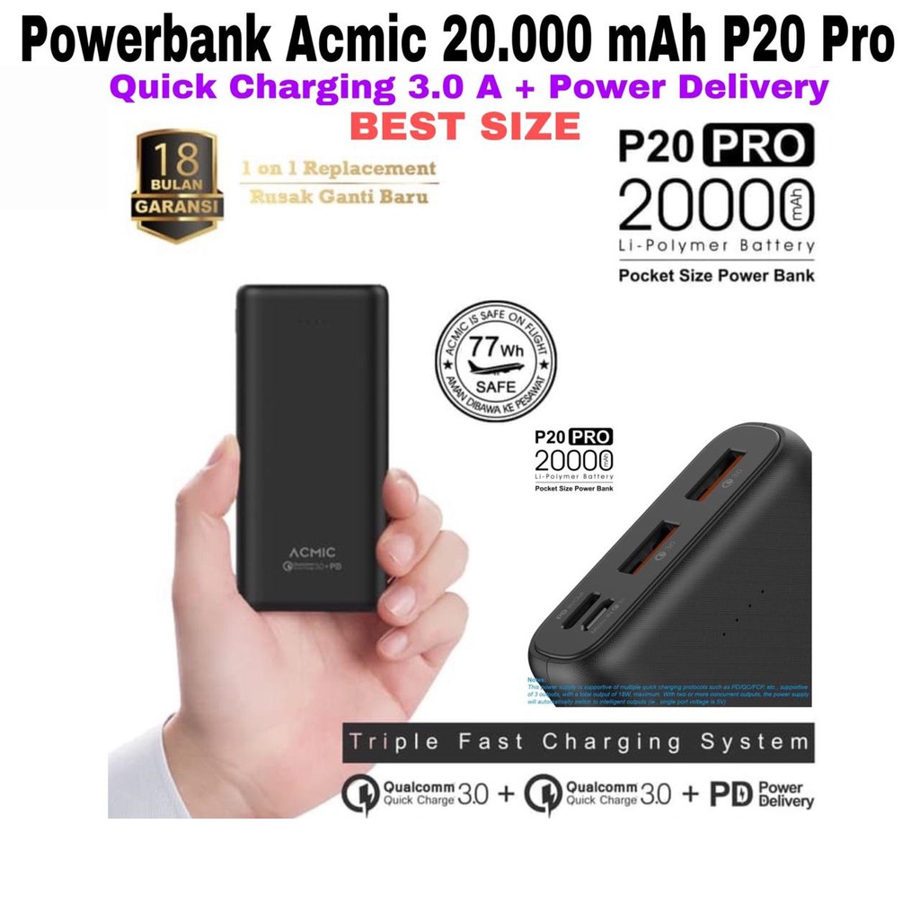 Powerbank Acmic Original 20 000 Mah P20 Pro Pd 3a Small Size