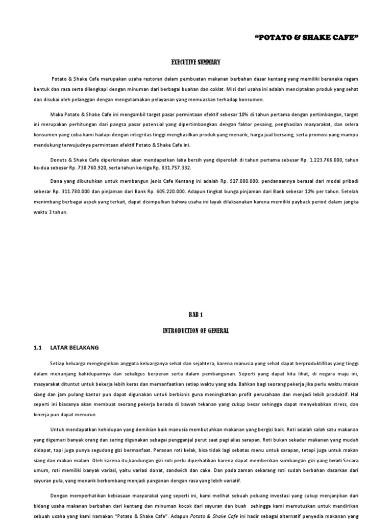 Contoh Studi Kelayakan Bisnis Potato Shake