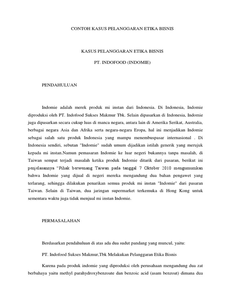 Contoh Kasus Pelanggaran Etika Bisnis Docx