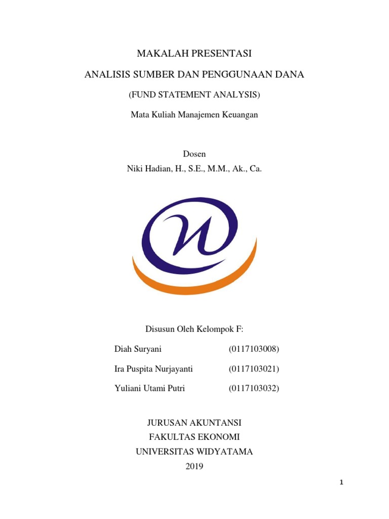 Tugas financial management makalah analisis sumber dan penggunaan dana untuk memenuhi salah satu tugas dosen pembimbing.