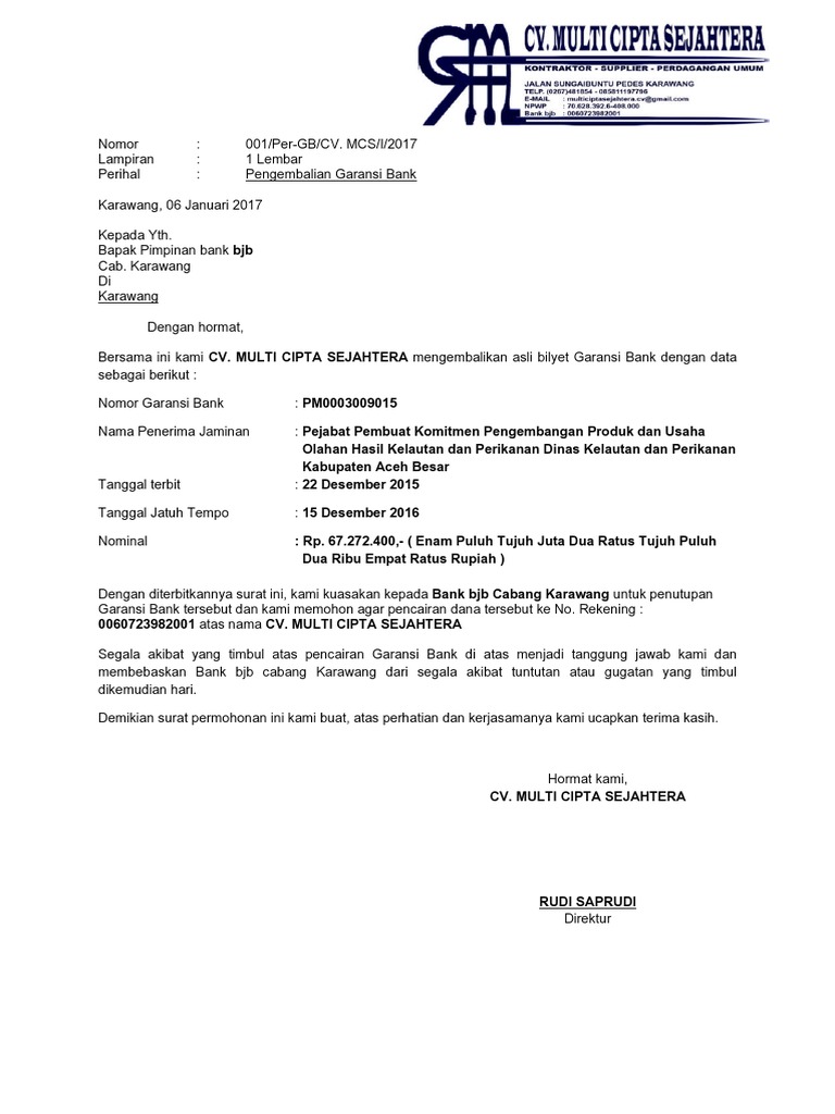 Kumpulan gambar contoh surat permintaan bank garansi yang baik 2019. Surat pencairanpenutupan garansi bank aminah azahra demikian surat permohonan ini kami buat atas perhatian dan kerjasamanya kami ucapkan terima kasihdengan diterbitkannya surat ini kami kuasakan kepada pt.
