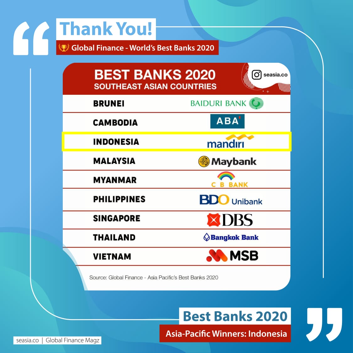 Pt bank mandiri tbk masuk dalam jajaran bank terbaik di dunia versi global finance worlds best bank 2020 bank mandiri berhasil mengalahkan beberapa bank dari indonesia dan bersanding dengan para bank jawara di wilayah asia pasifik seperti dbs singapura smbc jepang dan commonwealth bank dari australia. Grup perbankan asal spanyol mendirikan banco santander pada tahun 1857.
