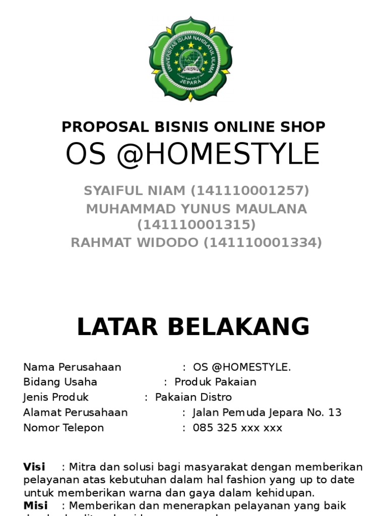 Latar belakang bisnis online shop. Ada juga sebagian masyarakat yg masih takut untuk melakukan belanja secara online. Di sini berikan pula informasi detail mengenai semua hal yang terkait dengan bisnis online shop anda. Pada bagian latar belakang proposal jelaskan mengenai alasan anda ingin menjalankan bisnis online shop.