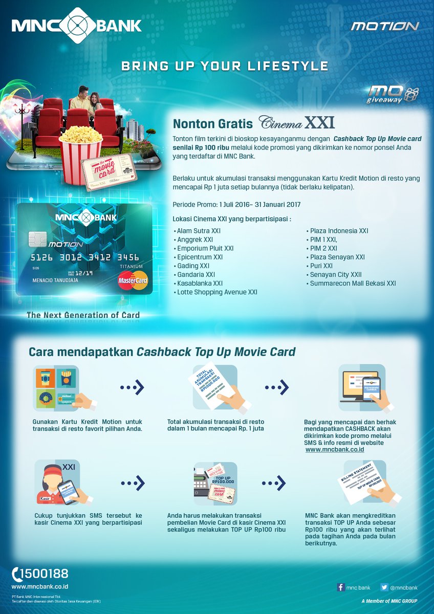 Kartu kredit motion. Anda dapat berbelanja atau bertransaksi terlebih dahulu dan membayar kemudian sesuai dengan tagihan billing statement yang disampaikan oleh mnc bank kepada anda setiap bulan. Lokasi cabang dan atm.