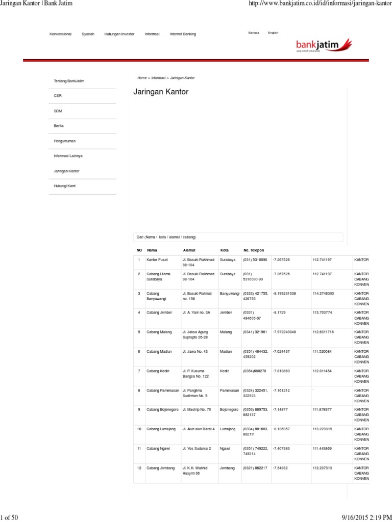 Jaringan Kantor Bank Jatim Pdf Document