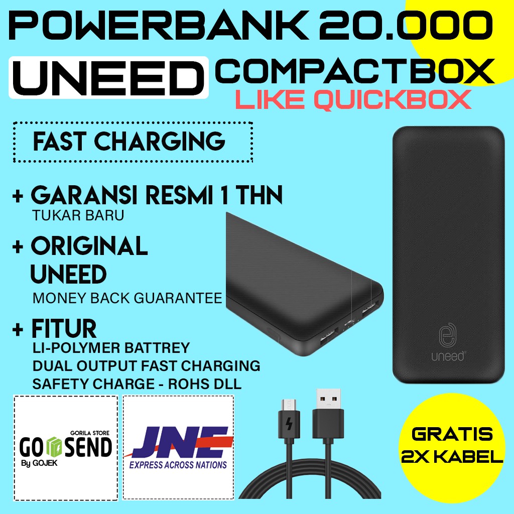 Power bank uneed merupakan merk power bank terbaik yang bisa kamu pilih jika membutuhkan pengisian daya sebanyak beberapa kali. Uneed quickbox m20 20000mah.